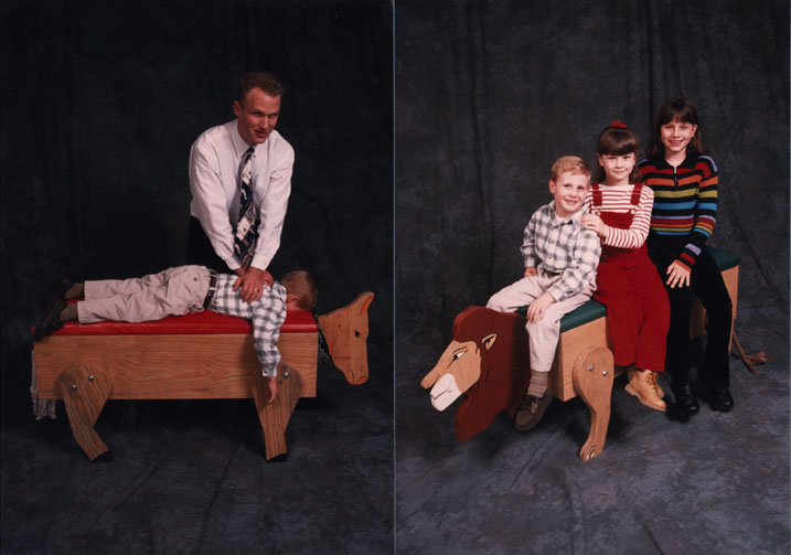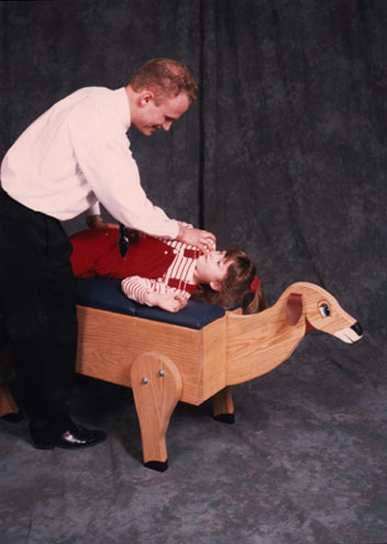 Each table is lightly stained for wood protection and simple assembly is required. The approximate weight is 110 lb. There are 4 table cushion colors to choose from: blue, orange, green, and red. These animal tables come with a money back guarantee the children will want to be adjusted on these. Each table comes with an added bonuse: a chest that opens for storage of chiropractic stickers and a sticker or word-view ledge. It is my mission to remove subluxations in as many children as possible. Subluxation based chiropractic is children. It is easier to build a child's future ratherthan repair an adult's past. It is my vision to makethe world a better place one unsubluxated child at atime. These tables have enabled my office to supportover a 40% kids practice. No office should be without one of these tables. Dr. Joe